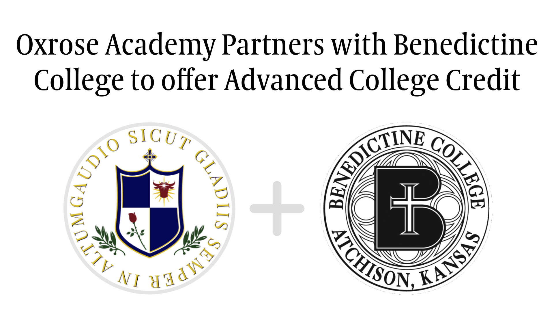 Beginning in March 2025, an agreement between Benedictine College and Oxrose Academy allows qualified Oxrose Academy juniors and seniors the opportunity to earn Benedictine College credits for specially identified courses. Oxrose Academy students enroll in both the Oxrose Academy course and the Benedictine College course.